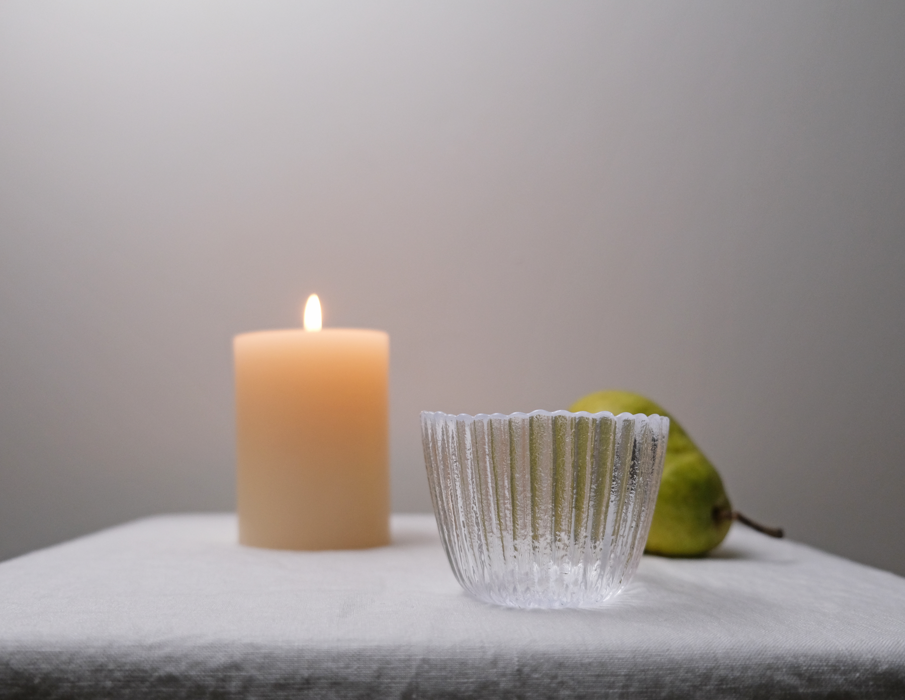 The Hyoko glass collection from Yoshinuma was designed from the observation of ice crystal formation. A perfect balance of nature and industrial glass making. The Hyoko glass bowl is used a candy dish, tealight or decoration.