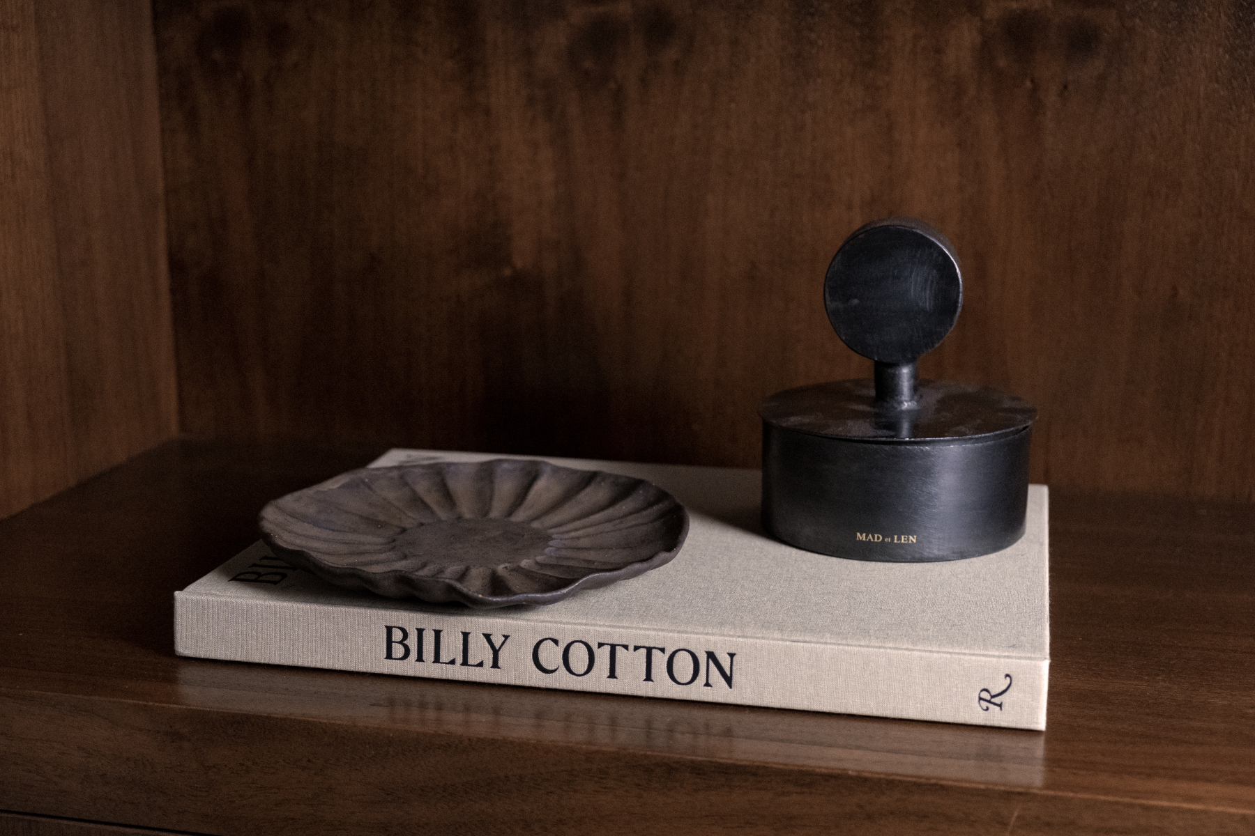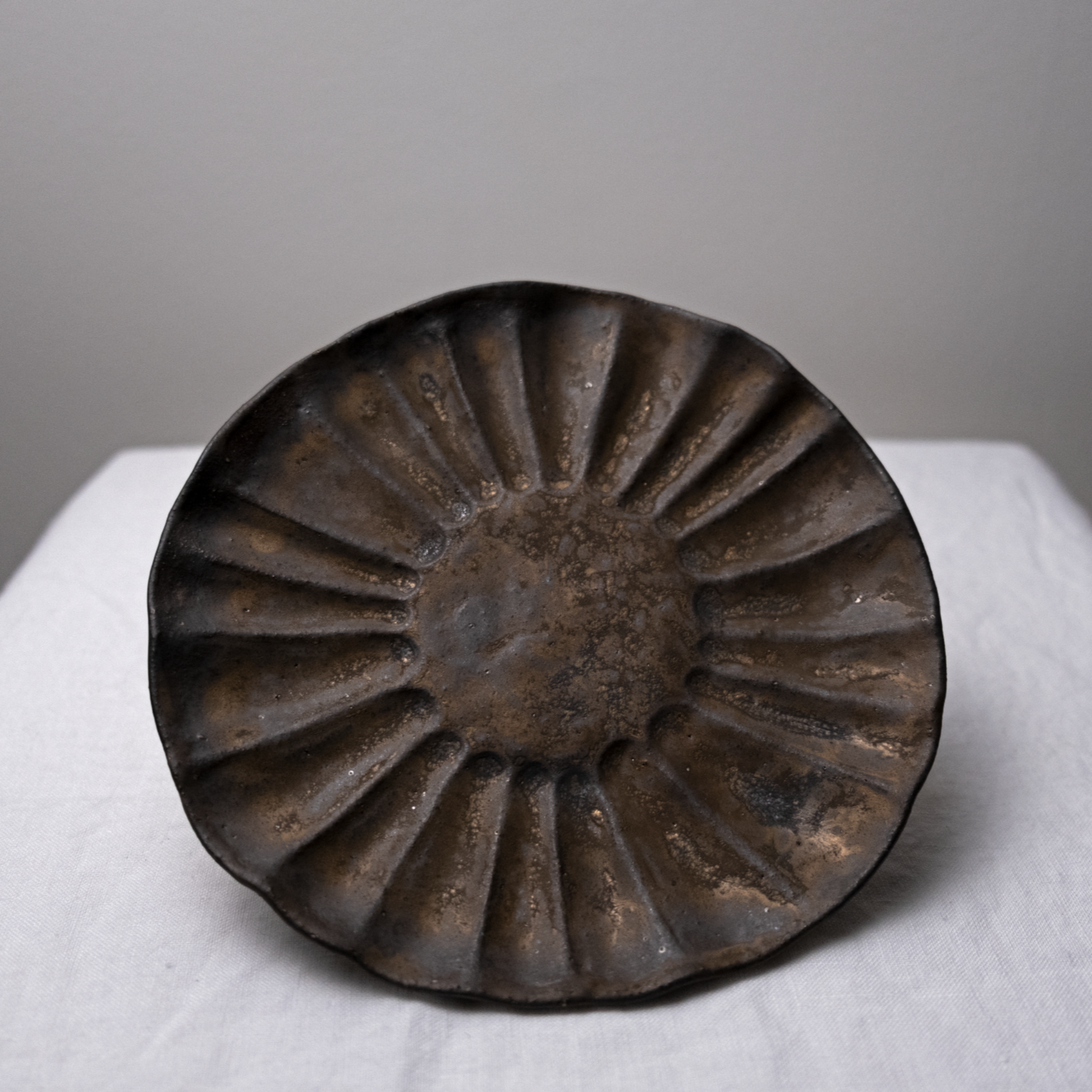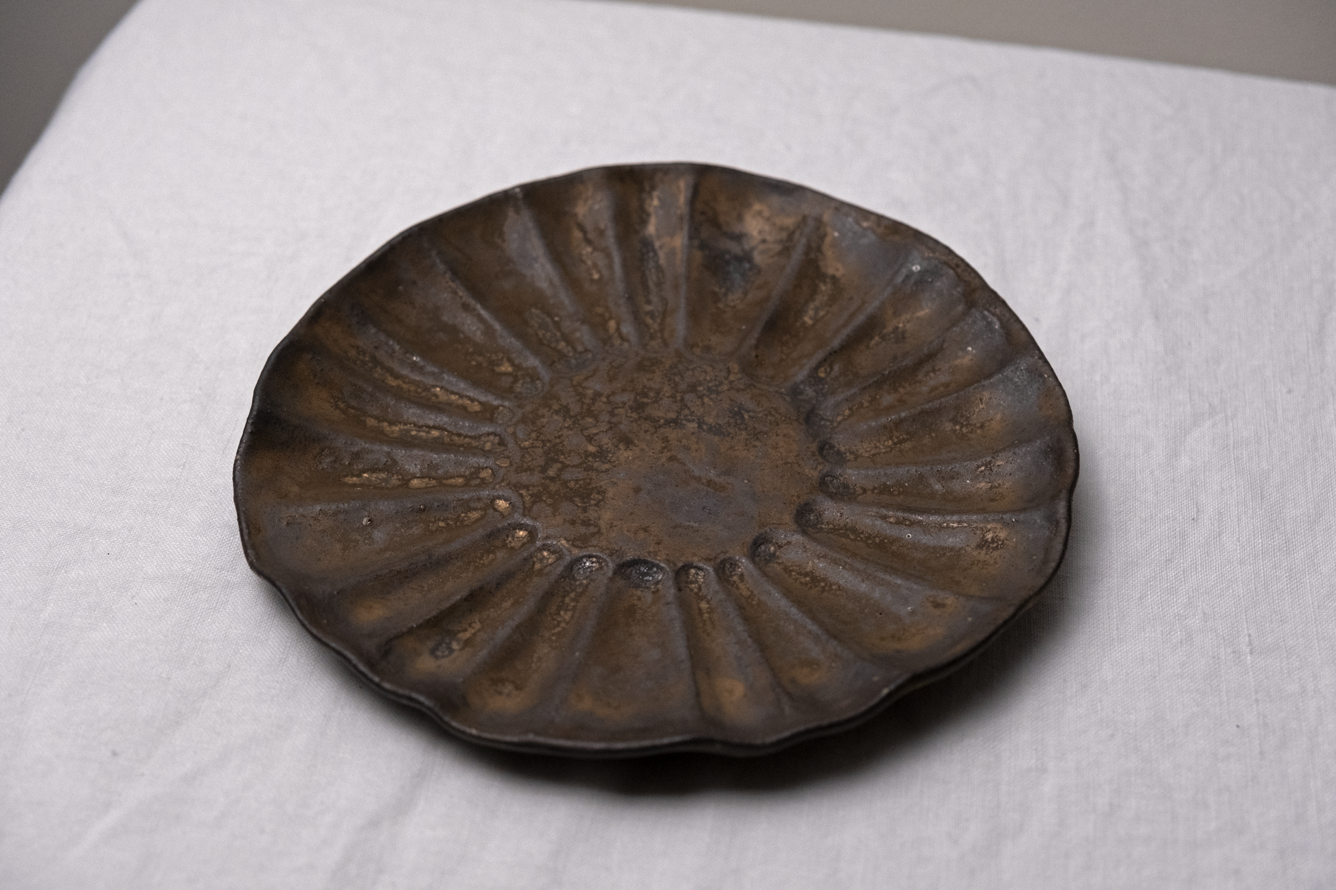 A primitive inspired plate from the Kinkan collection. An earthy tone with gilded details give this plate a beautiful Wabi appearance. Perfect a plate for appetizers or as a catchall on a console.