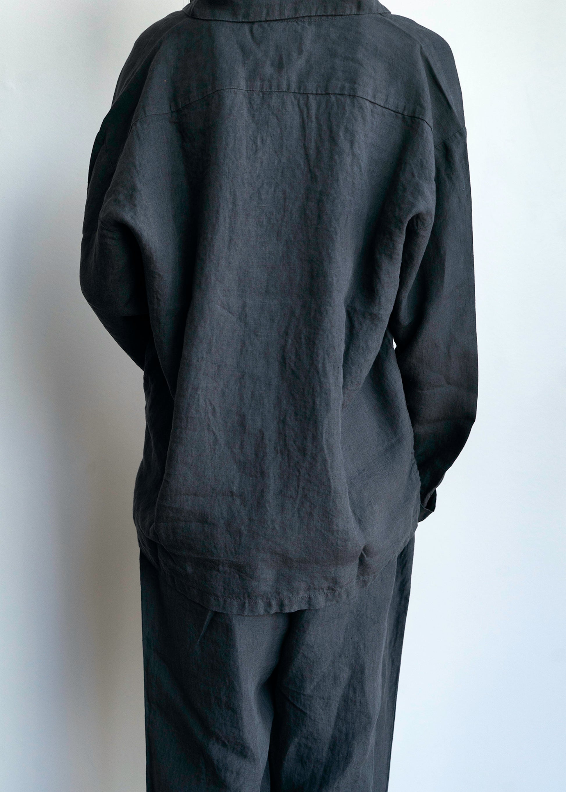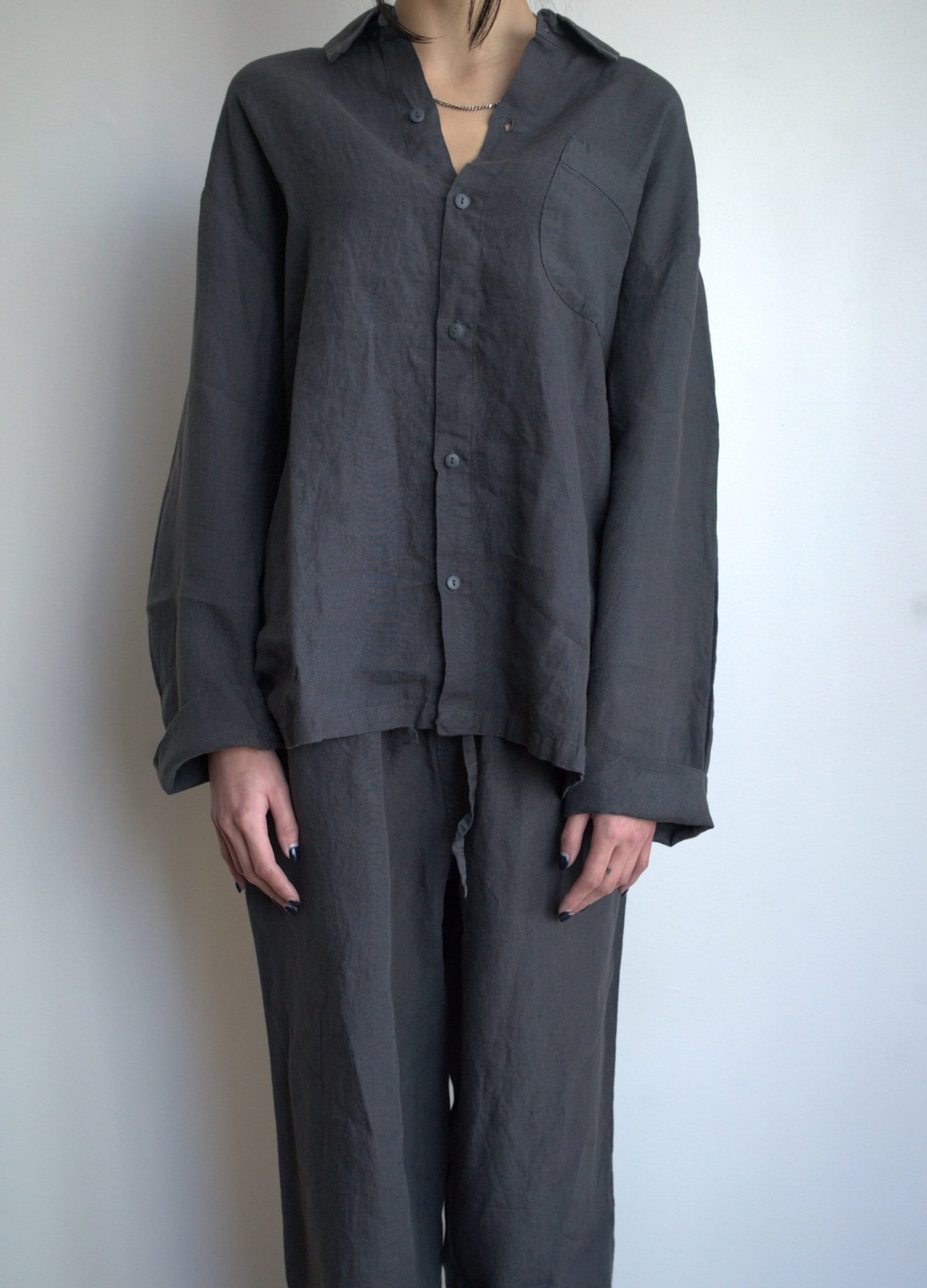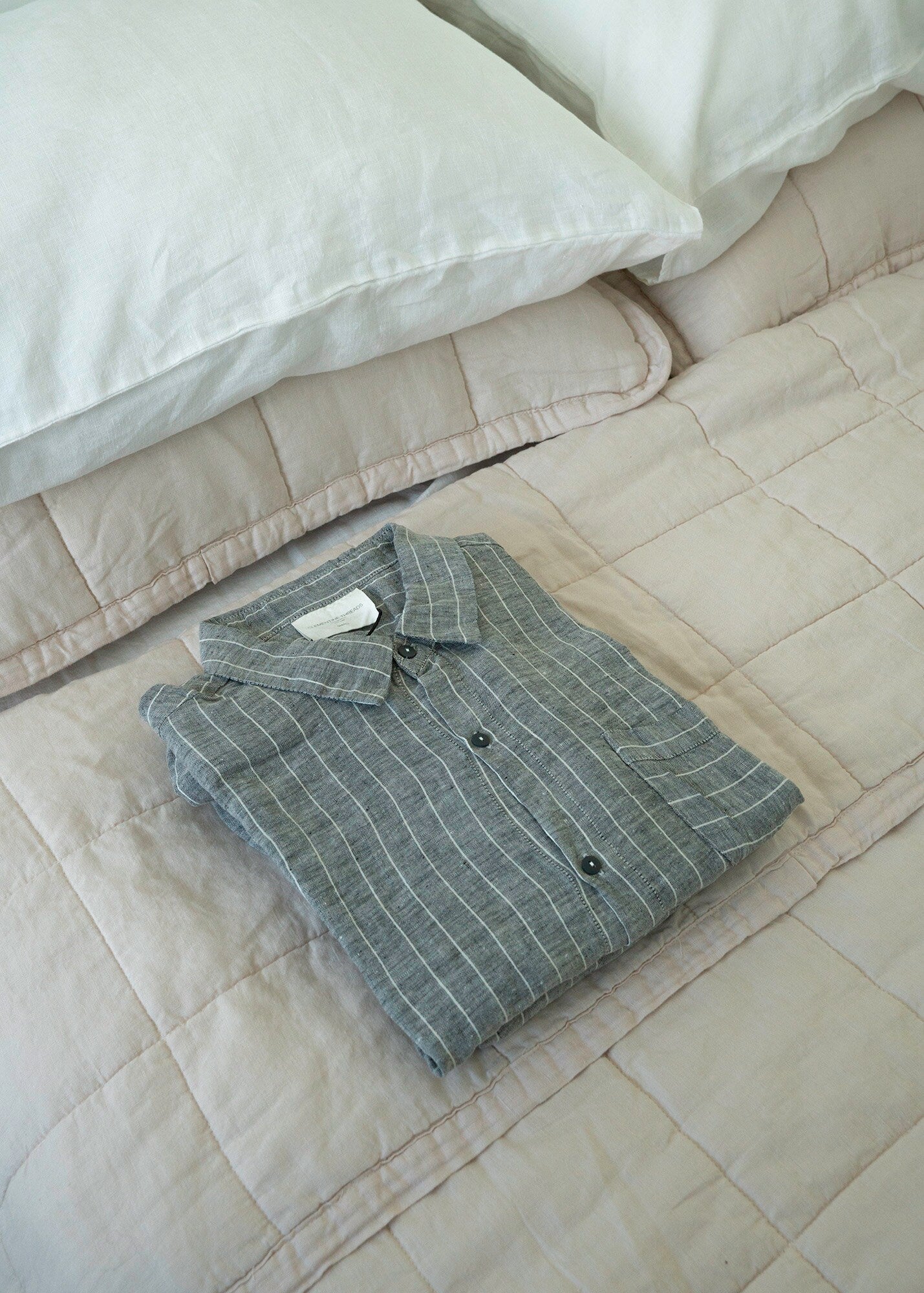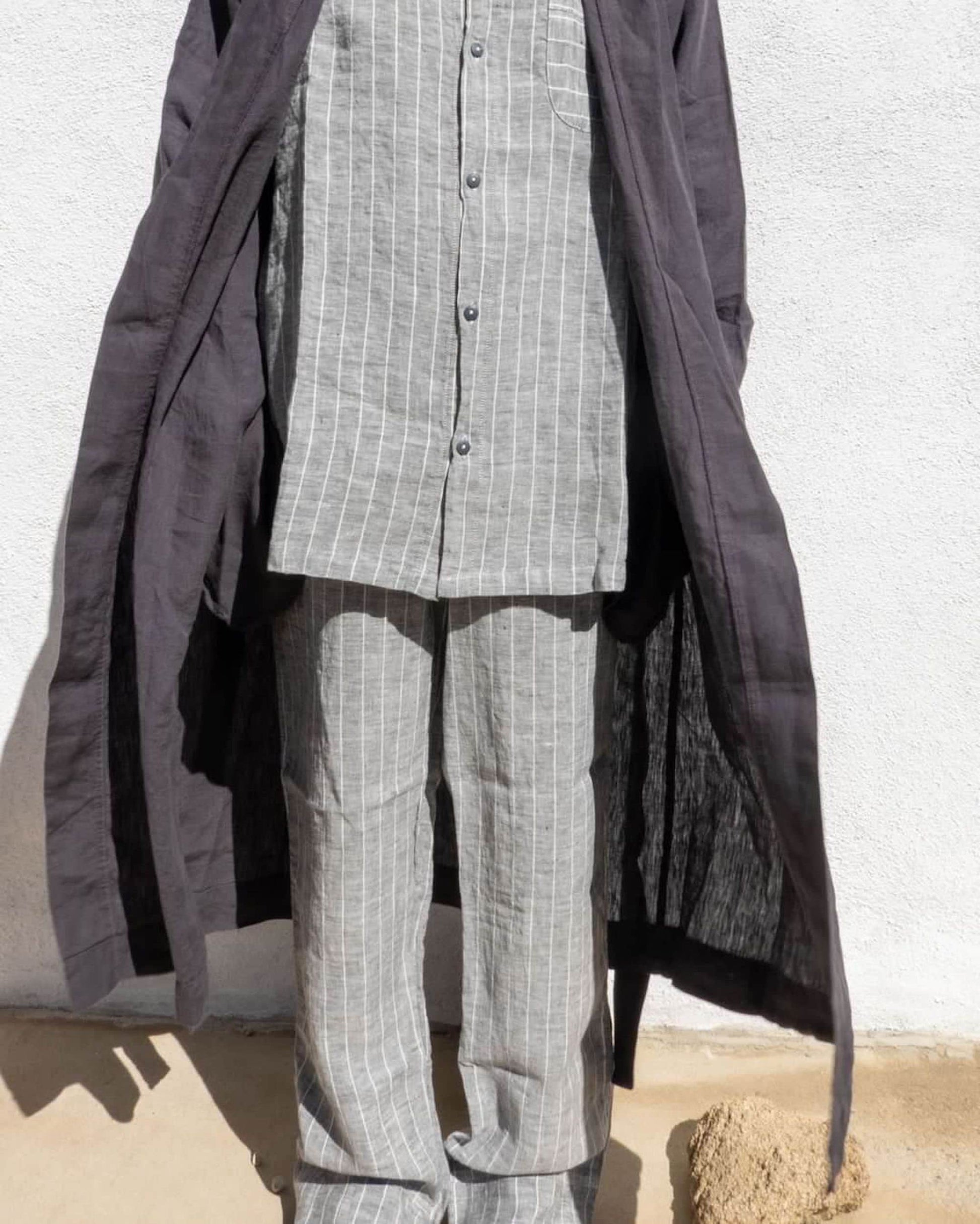 Introducing The Linen Pajama Set by Clementine Threads. available in a classic striped grey or charcoal color. Crafted from premium quality linen, this set is perfect for a comfortable night's sleep or lounging around the house. Crafted from 100% pure, natural flax linen sourced from Europe, these pajamas are not only beautiful, but also eco-friendly and durable.